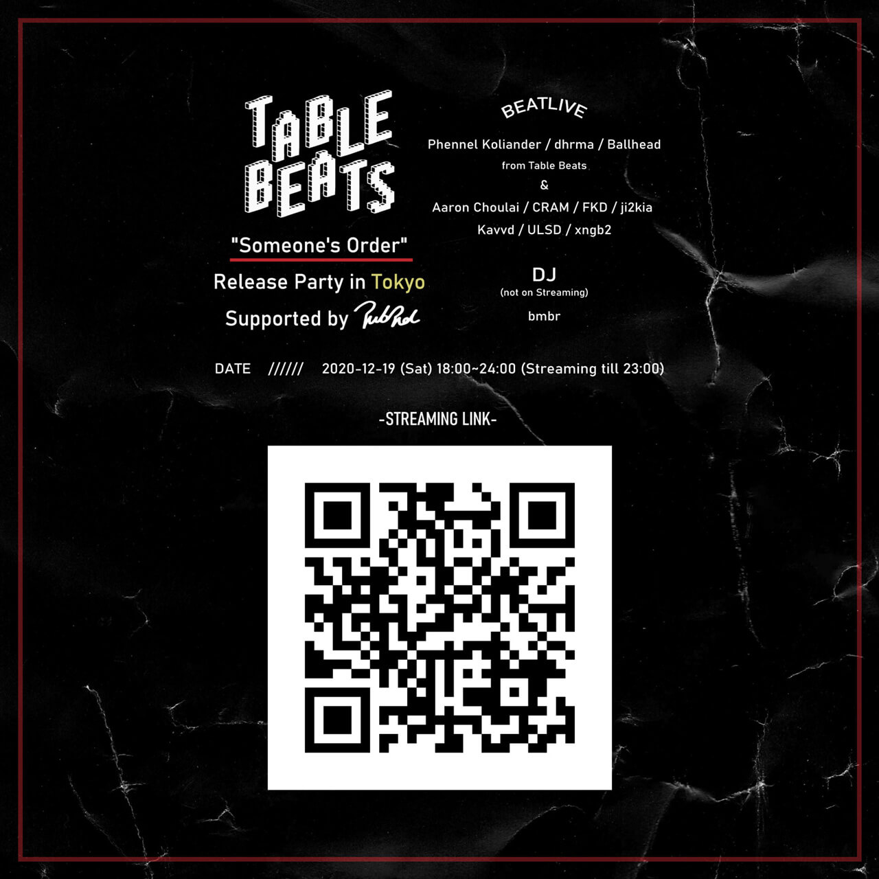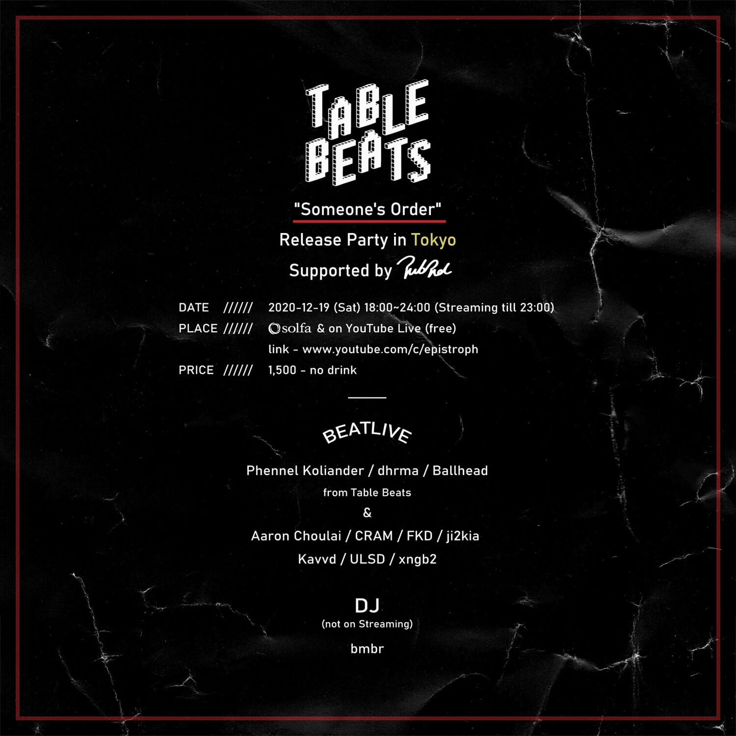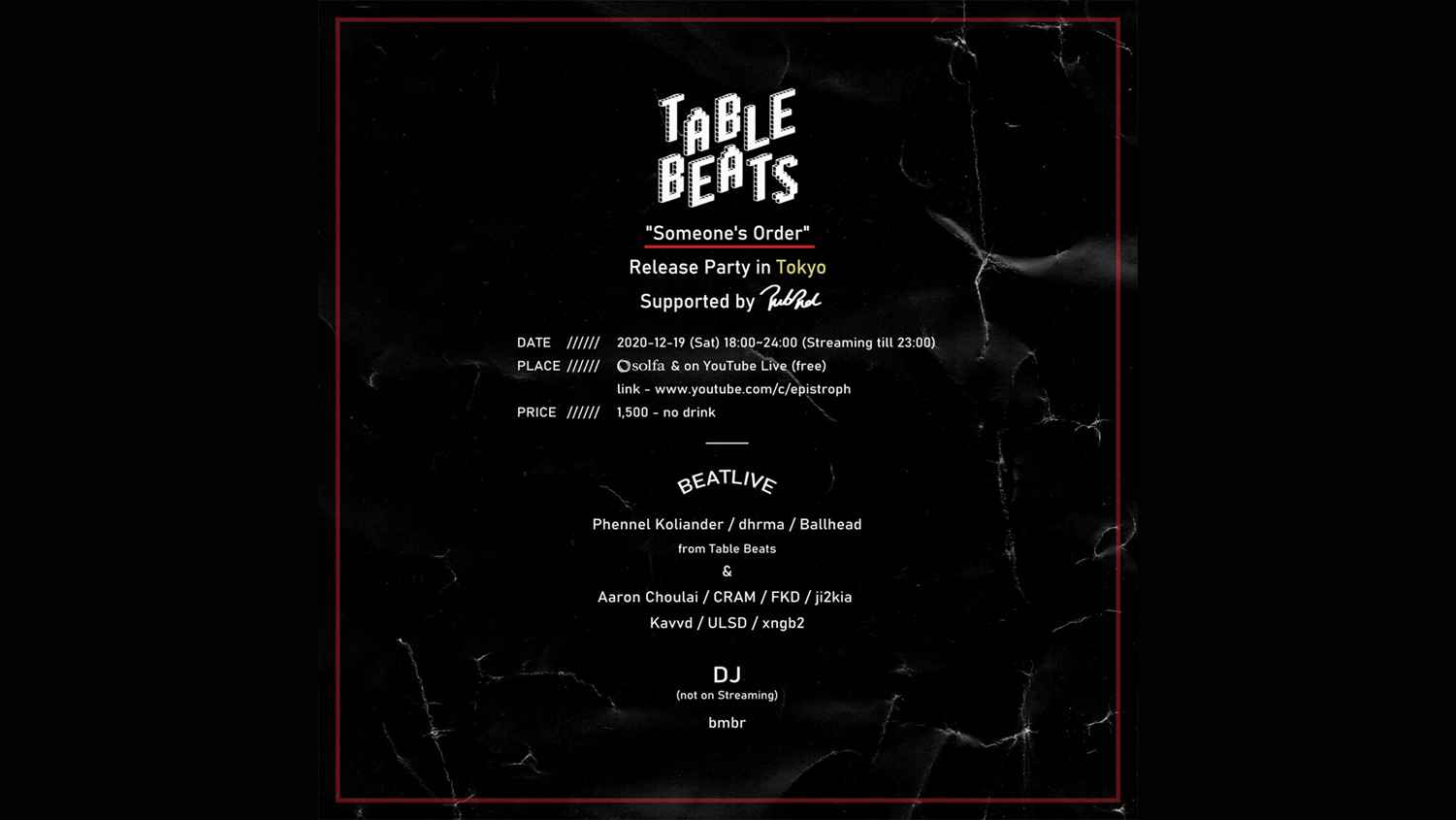 Table Beats ”Someone’s Order” Release Party in Tokyo 2020/12/19 view detail → -